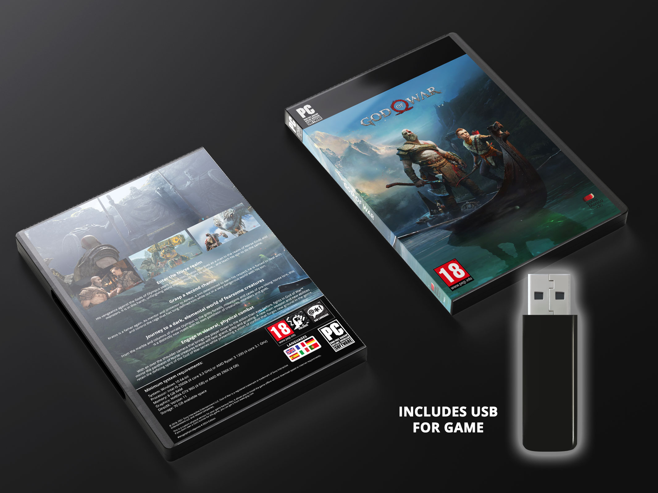 Custom box for the God of War (2018) game for PC.