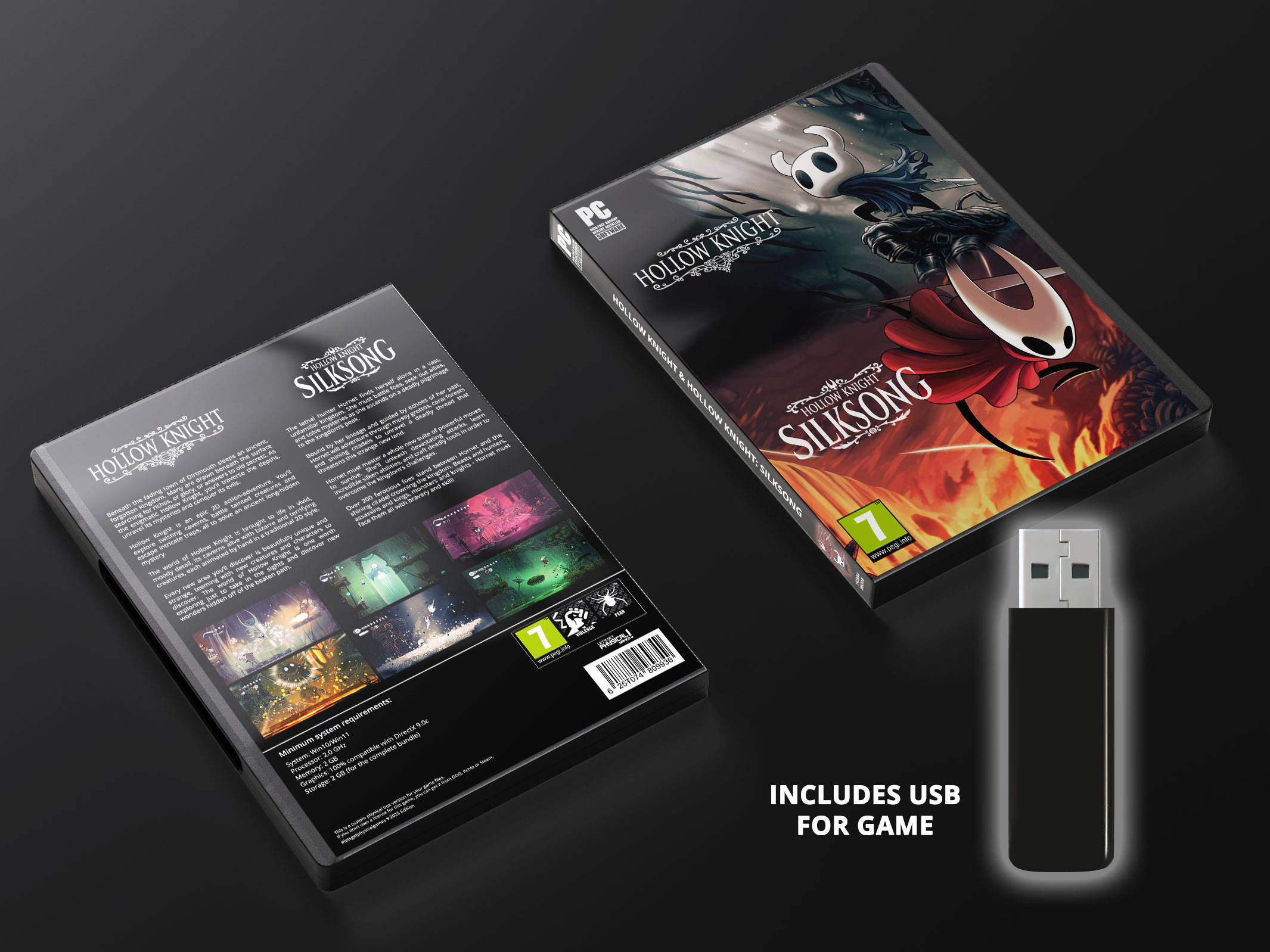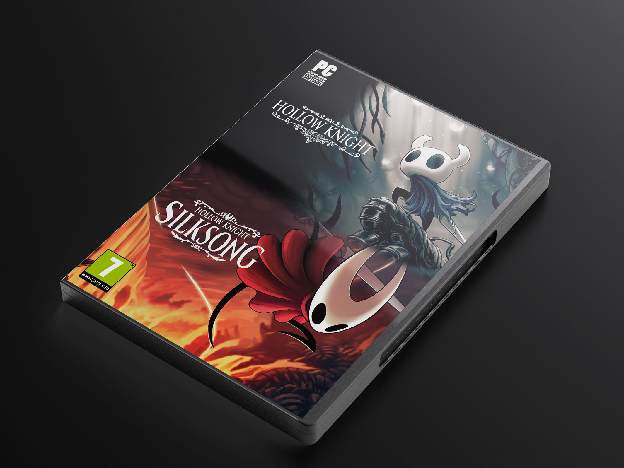 Custom physical box for the “Hollow Knight” and “Hollow Knight: Silksong” PC games collection.